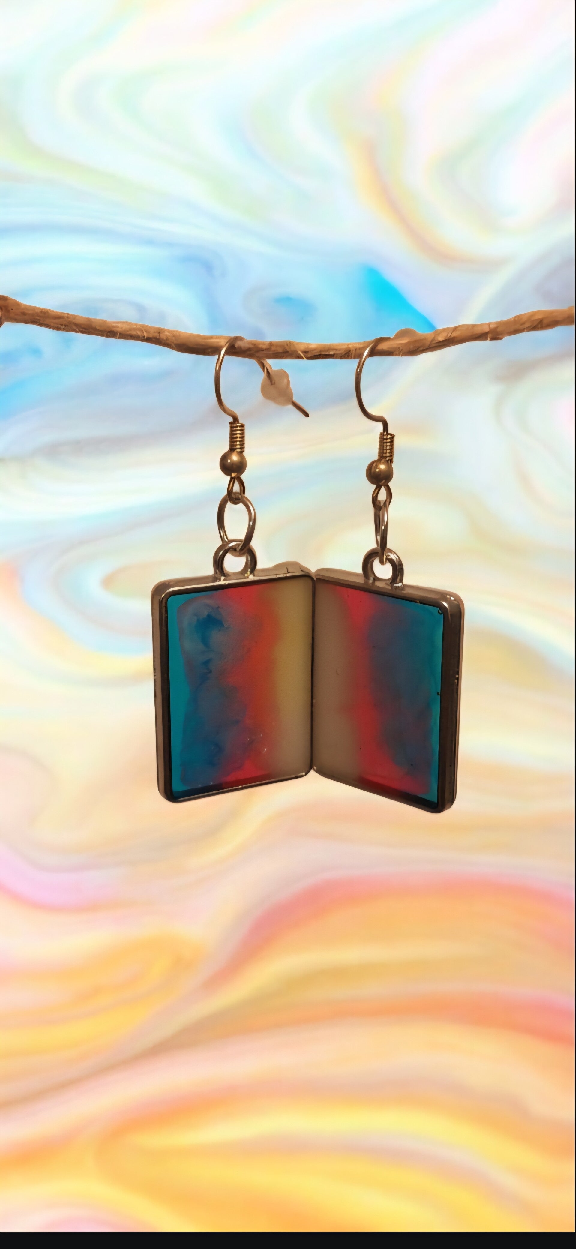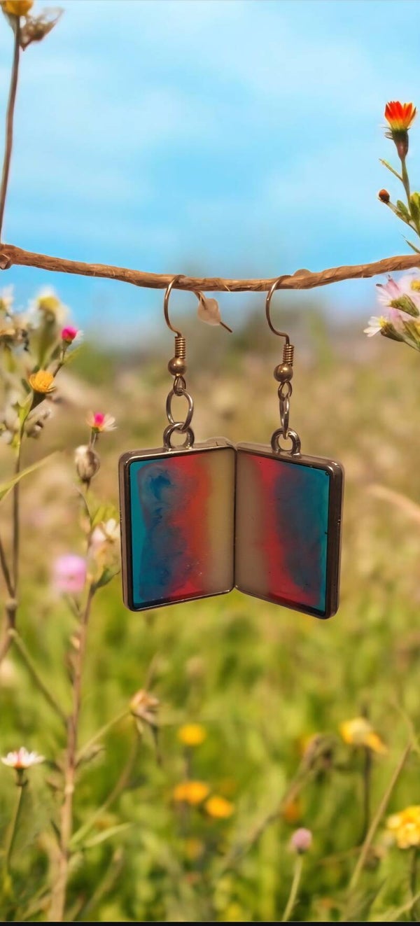 Add a bold pop of color to any outfit with these handmade resin rectangle earrings. Featuring a unique abstract art design in vibrant shades of blue, red, and gold, these lightweight statement dangle earrings are perfect for everyday wear or special occasions. Each pair is carefully crafted, making them a one-of-a-kind piece of boho jewelry that’s both modern and artistic. A great gift for women who love colorful accessories, artsy fashion, or handmade jewelry.